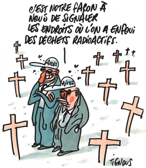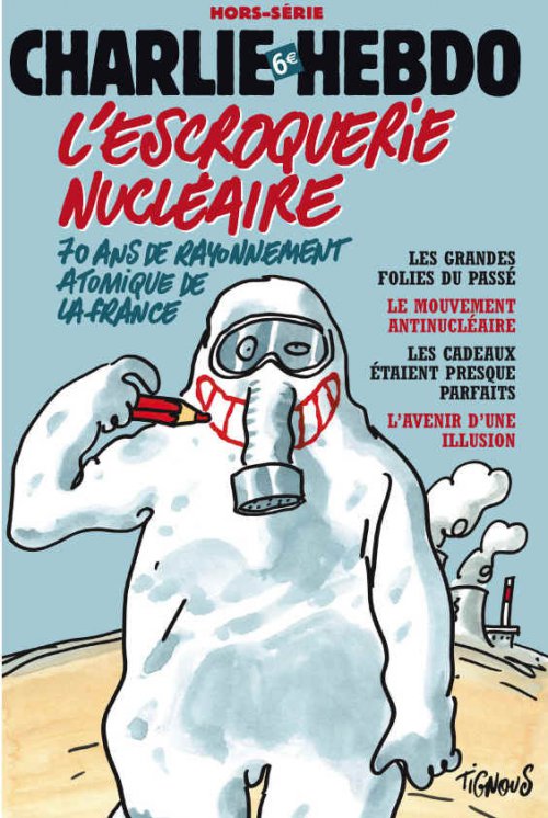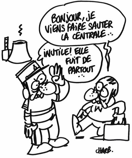 Bien entendu, cette revue de presse est agrémentée de dessins antinucléaires de Charlie-Hebdo. Merci à leurs auteurs, vivants ou morts... mais de toute façon vivants.
