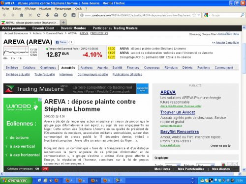 Areva sanctionnée par les marchés pour avoir porté plainte contre Stéphane Lhomme : - 4,10 %