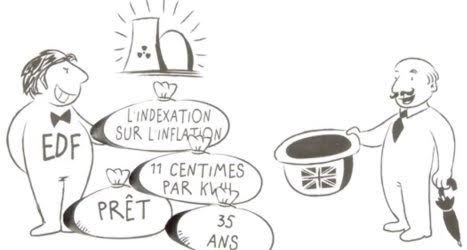 Cameron a attribué à EDF un tarif de rachat de l’électricité nucléaire incroyablement élevé et ce pendant 35 ans ! Ce montage mafieux est si grossier qu’il est attaqué devant la justice européenne par la courageuse Autriche (malgré les pressions et menaces de rétorsion de la France et de la Grande-Bretagne) et par une coopérative allemande de distribution d’électricité renouvelable.