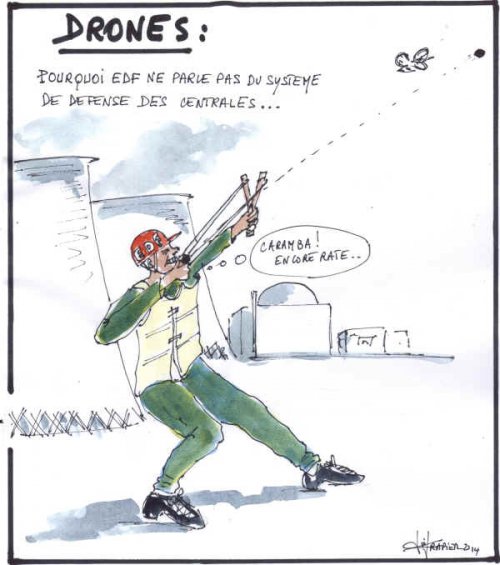 Si une équipe de télé veut vous interviewer devant une centrale nucléaire, les gendarmes se précipitent et menacent de confisquer les caméras : « on ne filme pas la centrale ». Par contre, des drones munis de caméras (en attendant que ce soient des bombes) entrent dans les centrales, filment la configuration du site jusqu’au moindre détail, et repartent tranquillement.