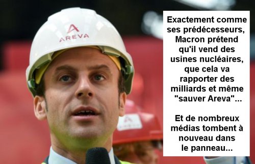 Rien de nouveau avec M. Macron, la "vente" d’une usine de retraitement de déchets nucléaires étant parfaitement fictive à ce jour, remplacée par la signature d’un fumeux "mémorandum pour un accord commercial".